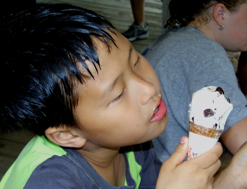 Sometimes people are afraid to crop in close, but close cropping often allows for better compositions. I see many photographs with a lot of dead space, or distracting space around the subject which leads the eye away from the focal point. In this photo of the boy eating ice cream my focal point is the mouth that is so expressive of desire. It is strategically placed in the side and bottom 1/3 of the photo emphasizing his lean toward the desired object, being emotionally drawn toward it. There were a lot of people in the background so I purposely zoomed in to eliminate as much of the distraction as I could in order to capture his emotion.