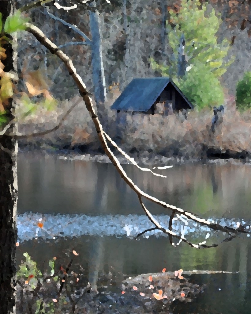 Every now and then while trapsing through the woods I run across something unexpected like an old shack, or a shelter of some type. The scene below had such a mysterious quality that I decided to give it a painterly look. It was in my early days of using creative editing software and I don’t even remember if it was Photoshop or Corel.